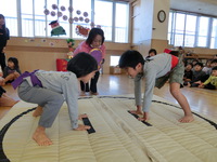 お相撲では「がんばれーがんばれー」と応援も大きくなる中、負けじと押し合い頑張る子どもたち。小さい子はキョトンと立っていたり、お互いにギュっと抱き合ってみたりと可愛らしい姿も見られました。