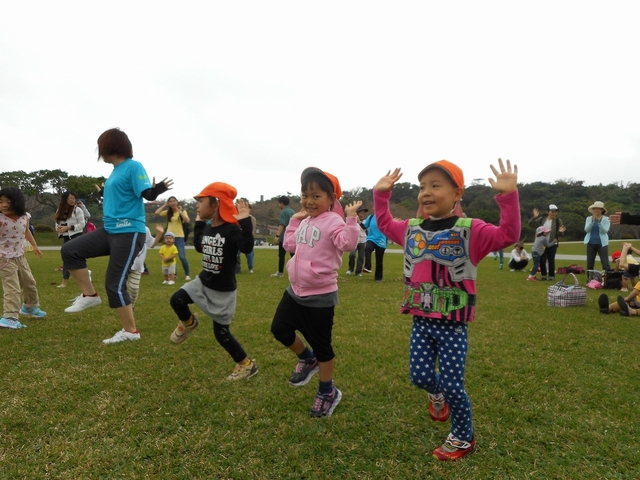 子ども達は、エビカニクスの体操も、はりきっています。