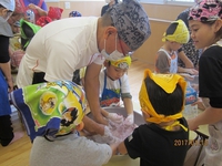 小さい子は、小麦粉粘土を使ってムーチーごっこを楽しみました。