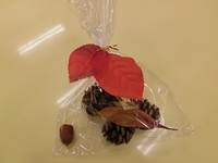 お土産は、皆で集めたドングリ! シイの実! 松ぼっくり! 赤い葉っぱ! と思い出話!!