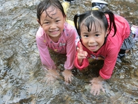 子ども達は新しい発見と体感した事のない自然との触れ合いや、いろいろな生き物との出会いに楽しそうではありませんか。いつの間にか上流の大滝までゴール!!ゆり組さんすごい!!