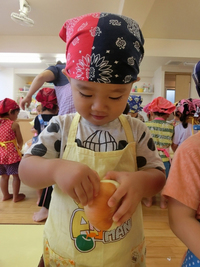 今日は〝カレー作り"とはりきっている子どもたち。